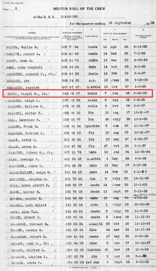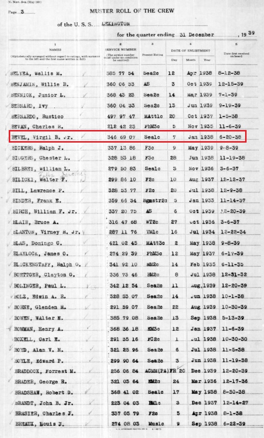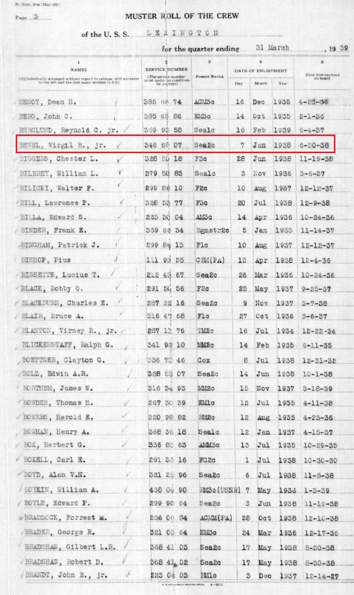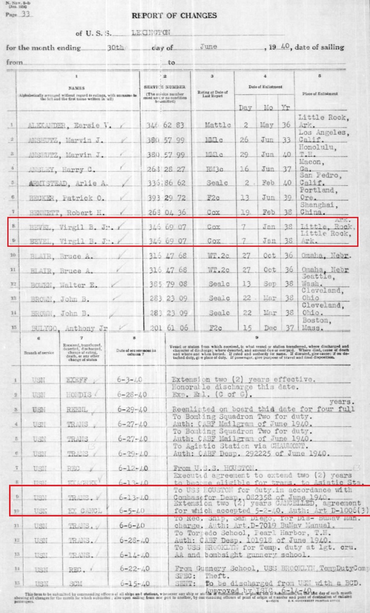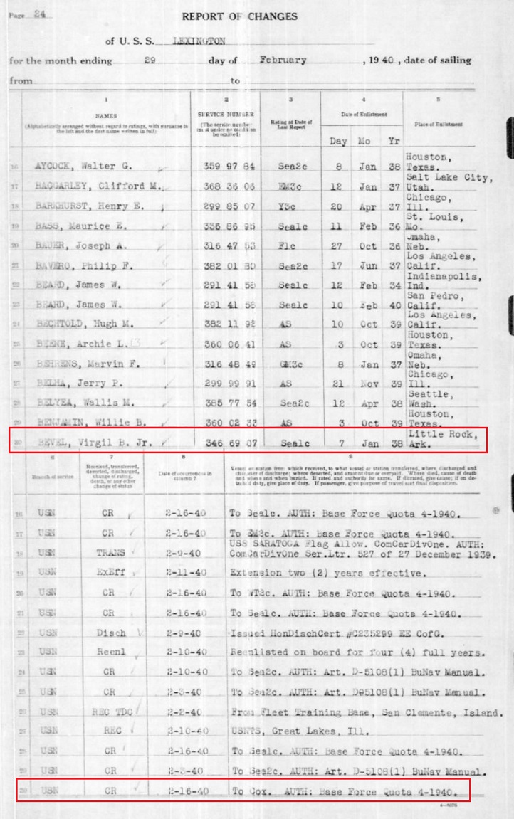 Virgil, Jr enlisted in the US Navy Jan, 7, 1938 in Little Rock, Arkansas.