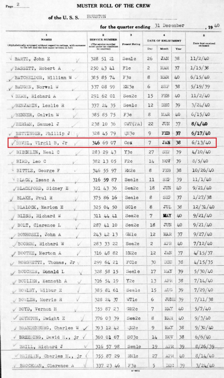 June 13, 1940 he was received on board the USS Houston. December 31, 1940