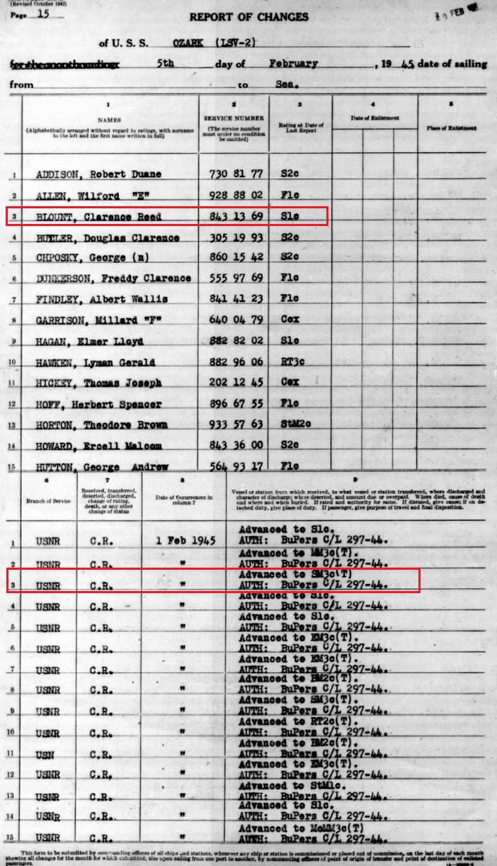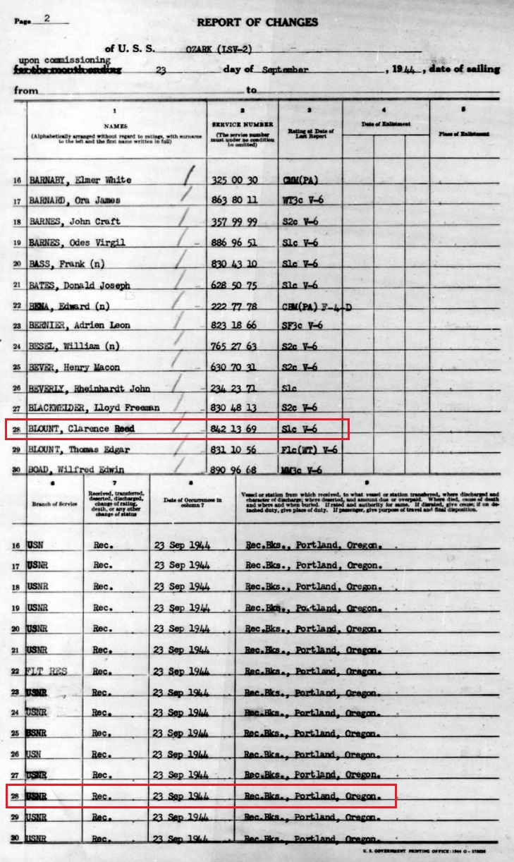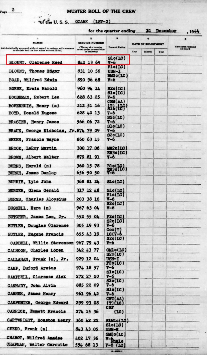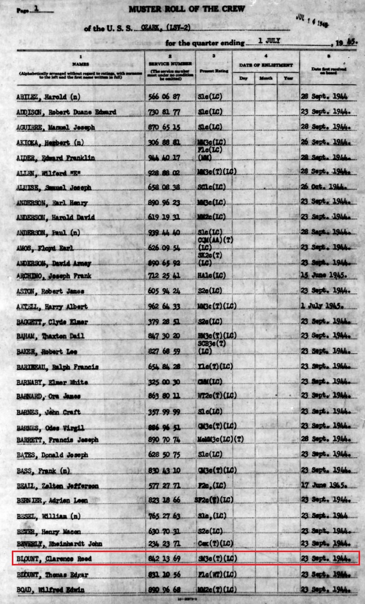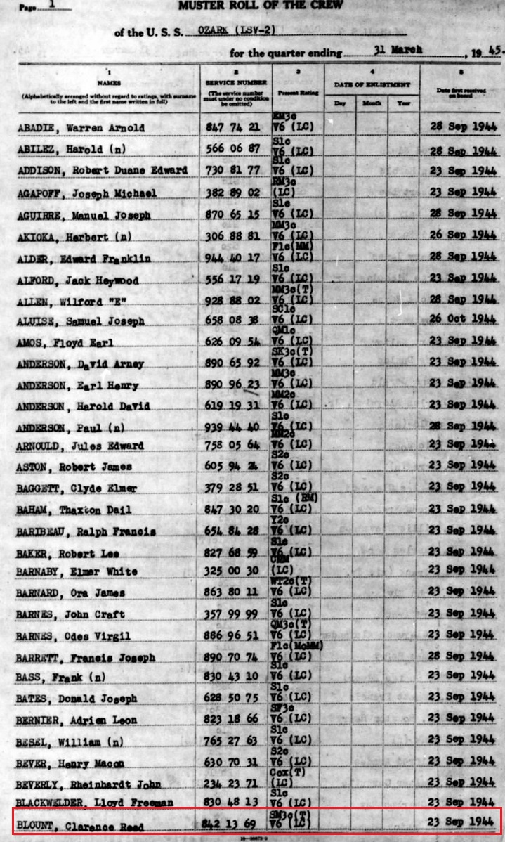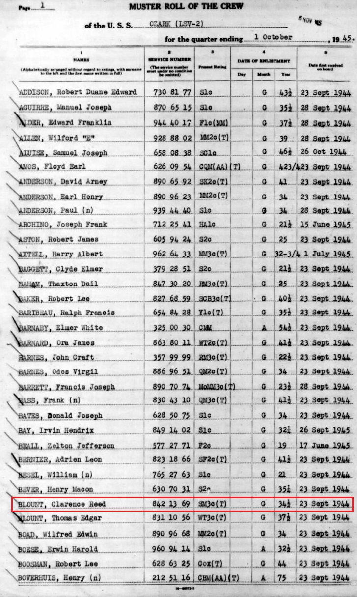 (Muster rolls of the USS Ozark are below)