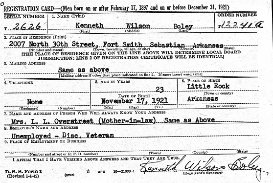 Kenneth Wilson Boley was born Nov. 17, 1921 in Little Rock Arkansas to