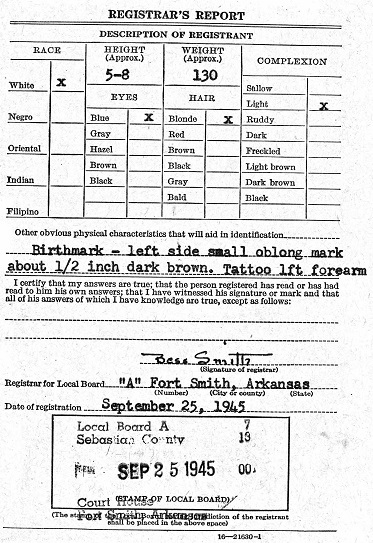 at Fort Smith, Ar. He is listed as "Unemployed - Discharged Veteran".