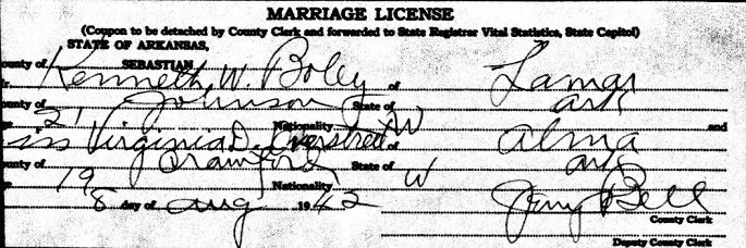 Boley of Lamar, Johnson Co. Ar. married Virginia Doris Overstreet of Alma Crawford Co., Ar.
