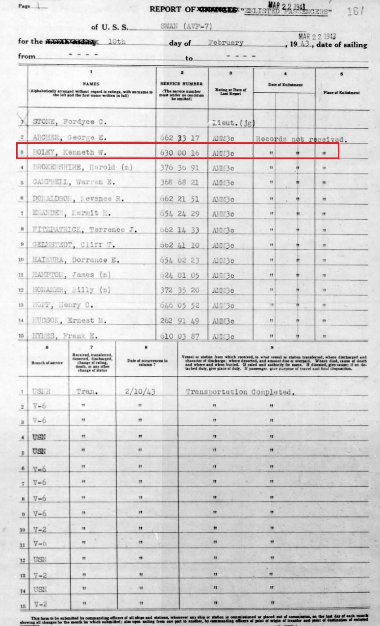 On July 2, 1941 Kenneth enlisted with the US Navy and served his full time