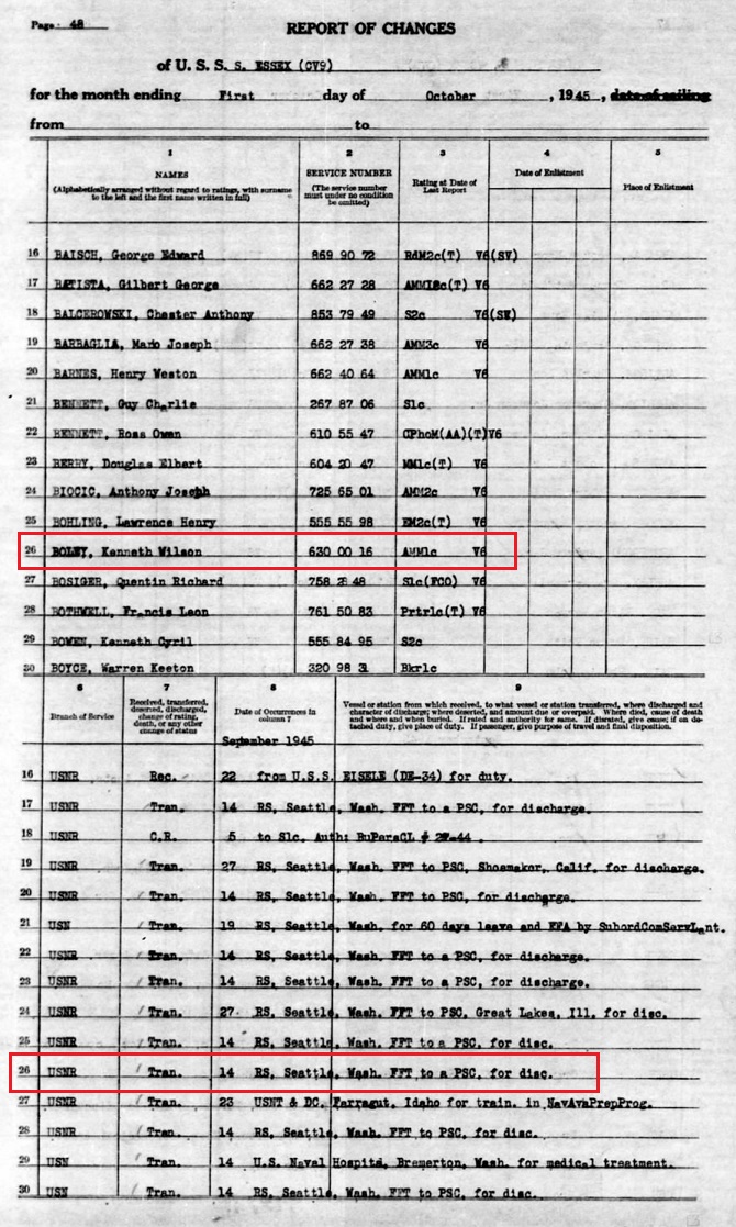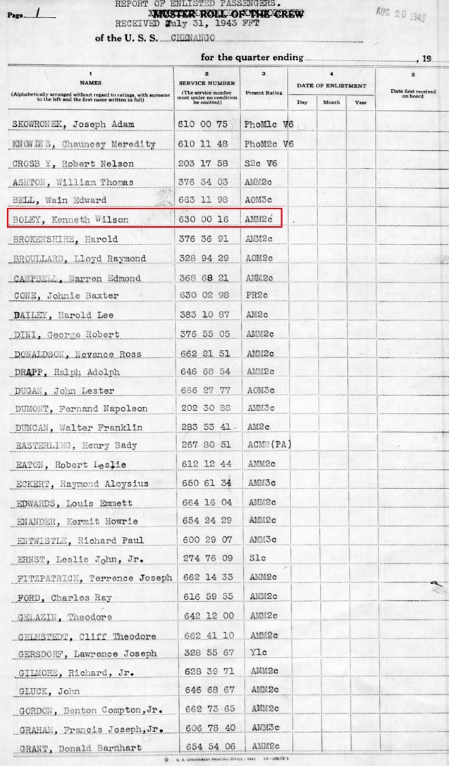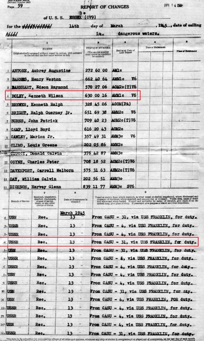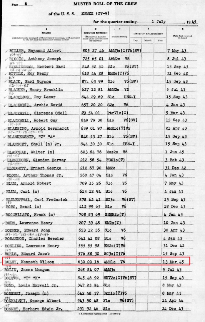 of enlistment. He was aboard at least four different ships, USS Essex,