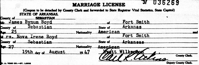 Arkansas. They re-married August 23, 1947 in Fort Smith, Sebastian Co., Ar.