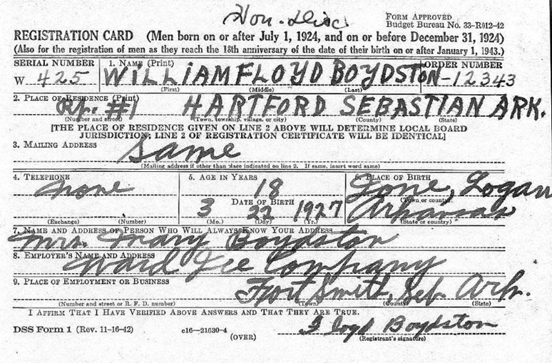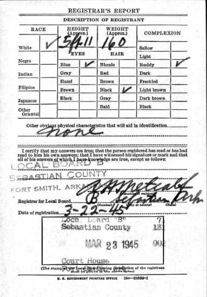 Bill registered for the military draft in Fort Smith,