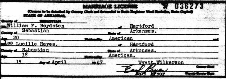 He received a marriage licence to Lucille Hayes April 15, 1947 in