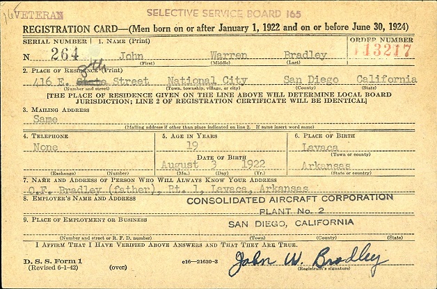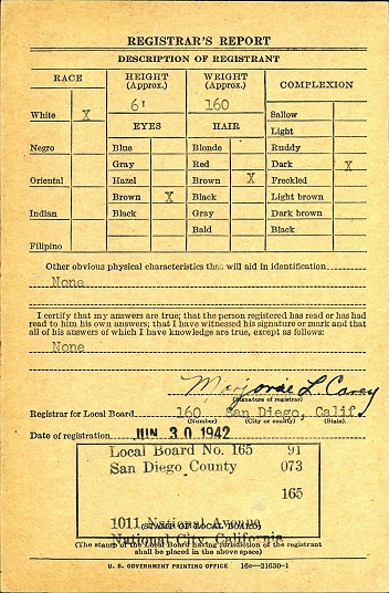 On June 30, 1942 Warren registered for the miitary draft at National City,