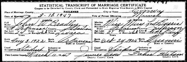 Mary Lee Burris from Pine Bluff, Jefferson Co., Ar March 13, 1947.