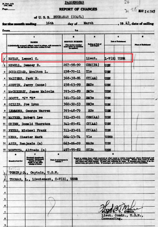 was for the month ending March 16, 1943. His is listed as a L-V(S).