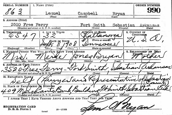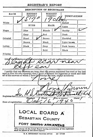 October 16, 1940 Lem registered for the military draft at the Senior High School at