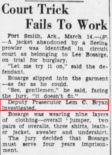 Lem was a well known attorney in the state of Arkansas. Many of his cases can be