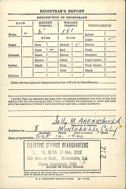 October 16, 1940 Garland registered for the military draft at Montebello, Los Angeles