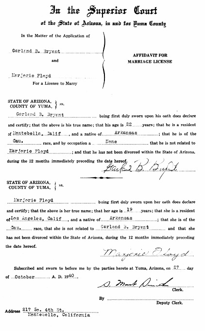 residing in Montebella, California and a native of Arkansas, married Marjorie Floyd,