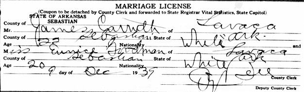 William Calvin & Adah Frances Weaver Carrth. December 9, 1939 James