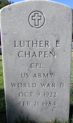Luther Edward Chapen passed away February 21, 1984 in Fort Smith, Sebastian Co., Ar.