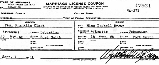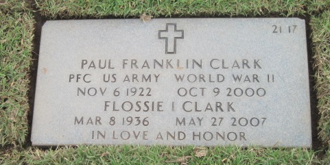 Paul Franklin Clark was born Nov 6, 1922 at Fort Smith, Sebastian Co.. Arkansas to