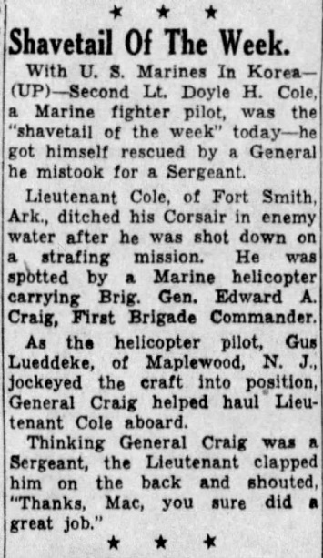 to Second Lieutenant Doyle H. Cole (MCSN: 0-20941), United States Marine Corps, for