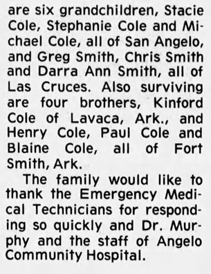Donald passed away in SanAngelo, Tom GreenCo., Texas. His burial was in