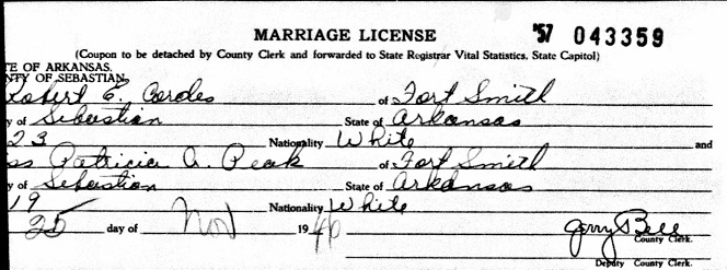 Robert married Patricia A. "Patsy" Peak. Both living in Fort Smith,