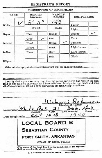 Carl registered for the military draft at White Oak, Sebastian Co., Ar. on October 16, 1940.