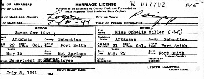 James married Ophelia Miller in Logan Co., Arkansas, both residing