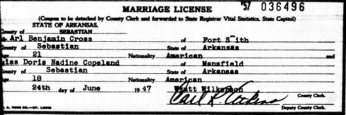 Doris Nadine Copeland from Mansfield, Sebastian Co., Ar.
