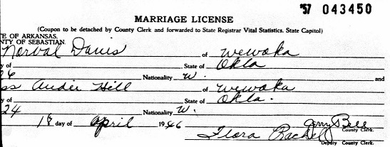 March 28, 1952 Norvell married Bobby Jene Daily at Grayson Texas.