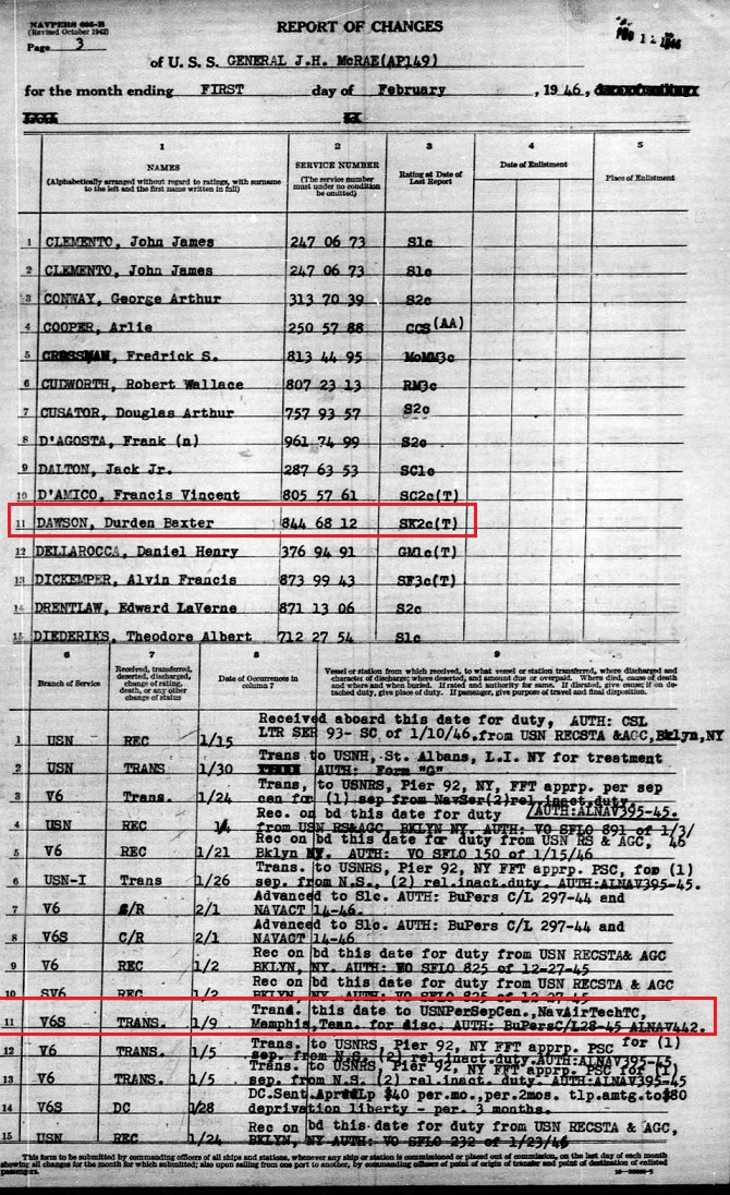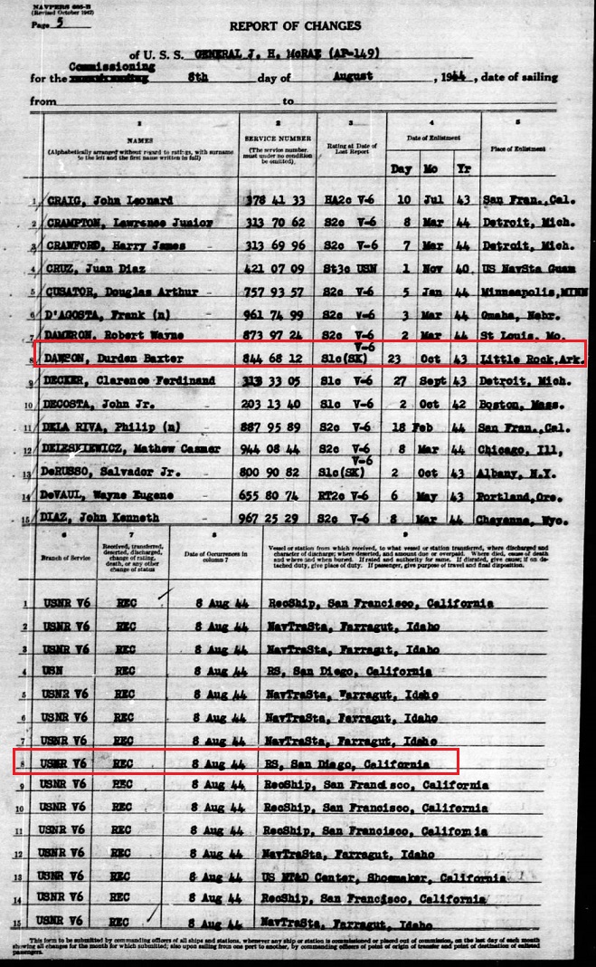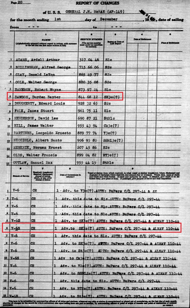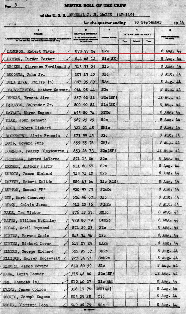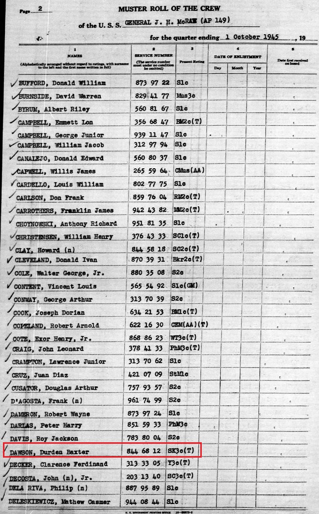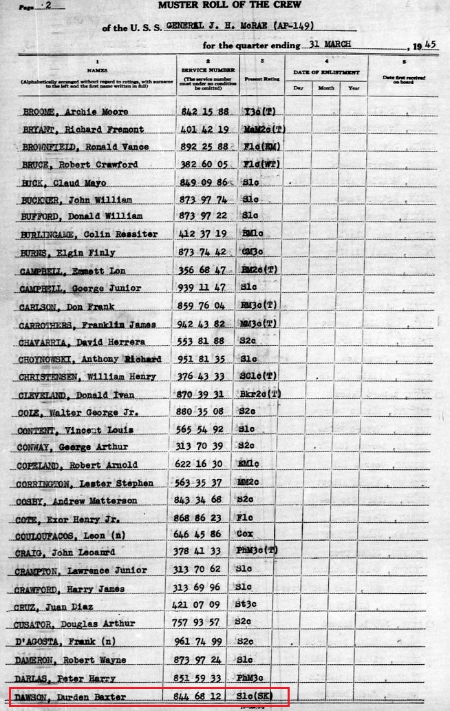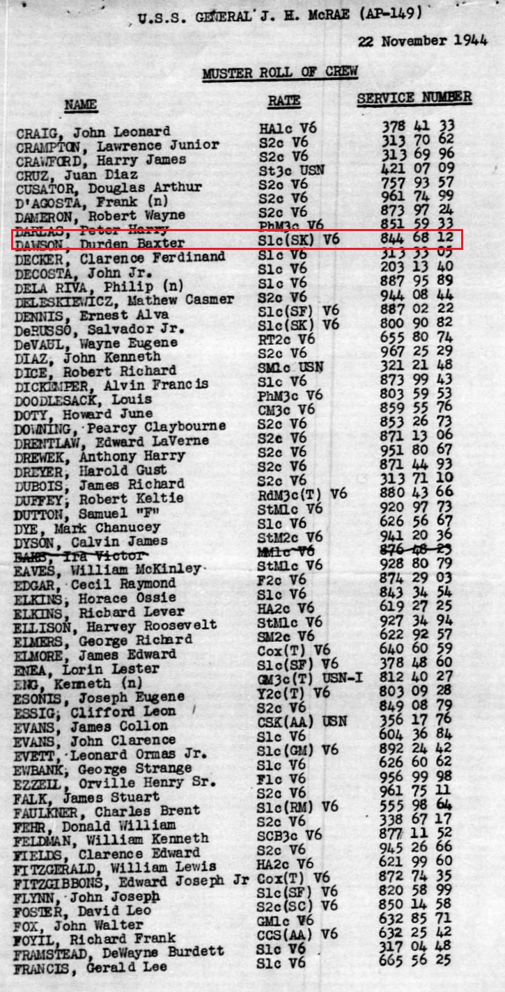Durden enlisted in the US Navy the 31st of October 1943. He was assigned to the