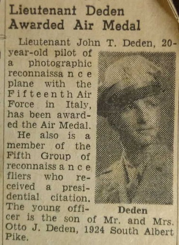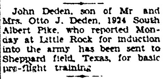 John Thornton Deden was born October 14, 1924 at Fort Smith, Sebastian Co., Ar. to