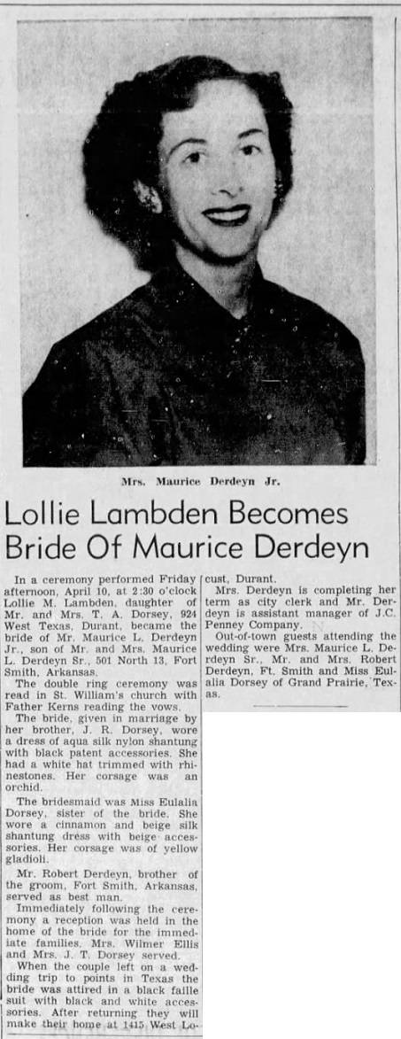 Maurice, living at Fort Smith, Ar. married Lolli Margaret Dorsey Lambden a WWII war widow,