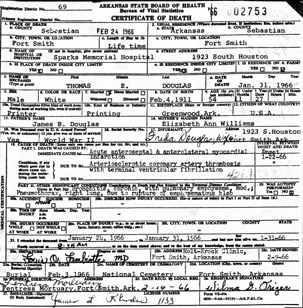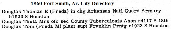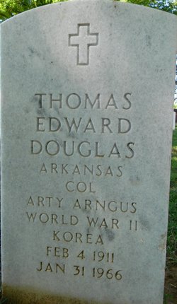 Col. Thomas Edward Douglas passed away January 31, 1966 in Fort Smith, Sebastian Co., Ar.