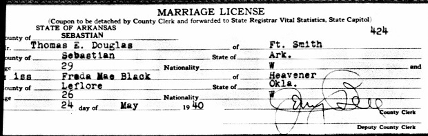 Co., Ar. he married Freda Mae Black from Heavener, LeFlore Co., Oklahoma.