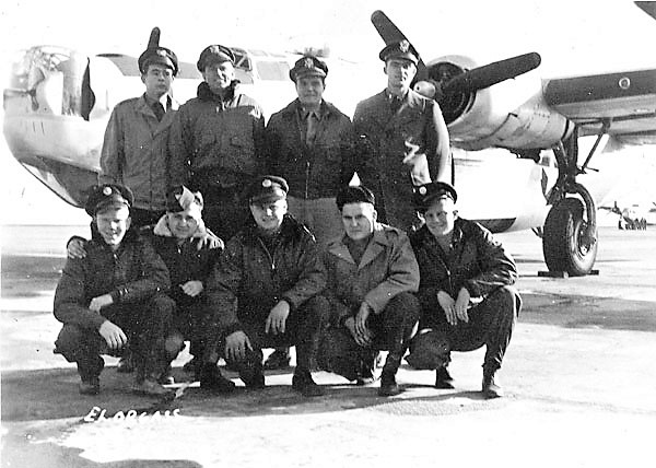 Front Row, L - R: Joe Coker, Engineer/Gunner; William Roberts, Co-Pilot; Hudson Owen, Pilot;