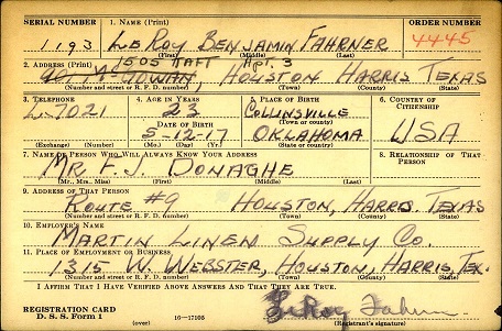 LeRoy Benjamin Fahrner was born May 17, 1917 in Collinsville, Tulsa County,