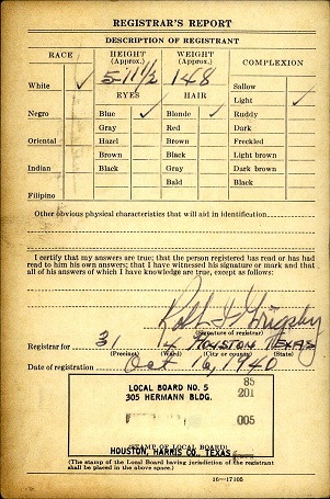 on the 20th of Oct 1941. His residence at that time was Harris County, Texas.
