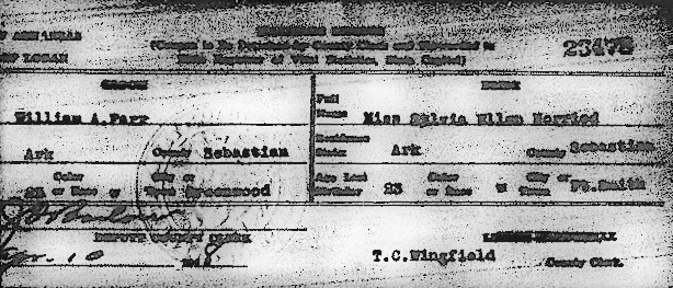 Greenwood, Sebastian Co., Ar. The marriage was in Logan Co., Ar.