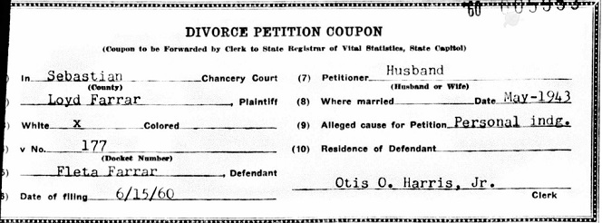 Fleta Fay Anderson 22 May 1943 at Slatonville, Sebastian Co, AR. Jun 15. 1960