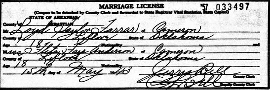 Loyd Taylor Farrar was born Apr 7, 1926 at Rock Island, LeFlore Co., Ok to