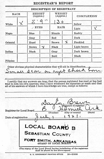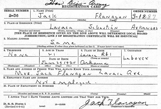 July 1, 1941 Jack registered for the military draft in Ft. Smith, Sebastian Co., Ar.