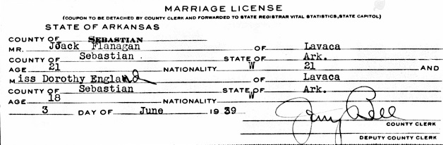 June 3, 1939 Jack married Dorothy England, both from Lavaca, Sebastian Co., Ar.