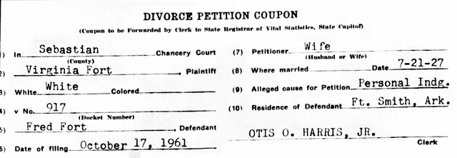 William Fredrick Fort passed away November 1m 1971 at Fort Smith, Sebastian co.,