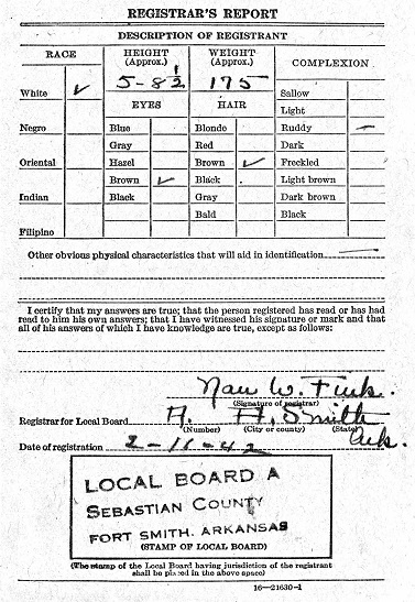 "Fred" enlisted in the US Army September 24, 1923 at Fort Smith, Ar.
