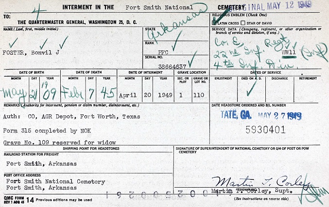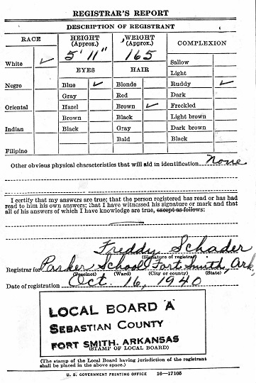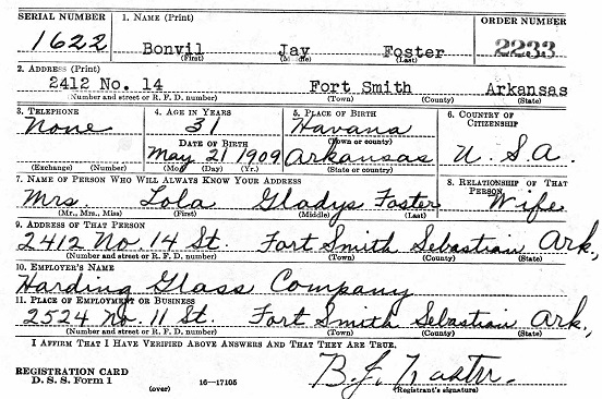 Oct 16, 1940 Bonvil registered for the military draft at Parker School in Fort Smith,