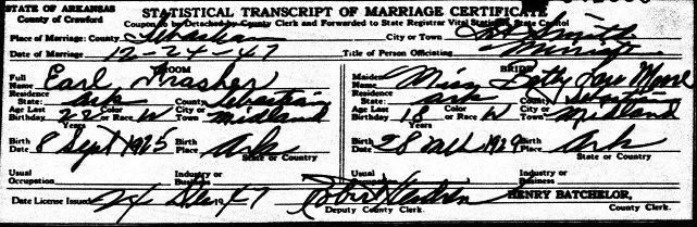 married Betty Lou Moore in Crawford Co., Ar. Both residing in Midland, Sebastian Co.,