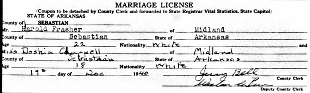 Joseph "Joe" Hudson & Bertha Patterson Frasher. December 21, 1940 Harold