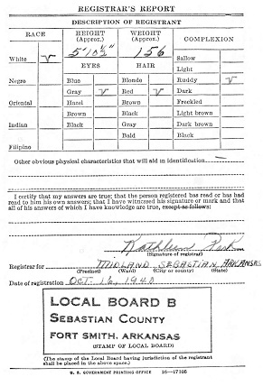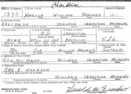 Harold registered for the military draft October 16, 1940 at Midland, Sebastian Co., Ar.