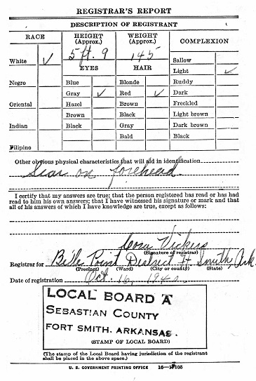 Oct 16, 1940 Burley registered for the military draft at Belle Point School in