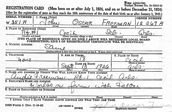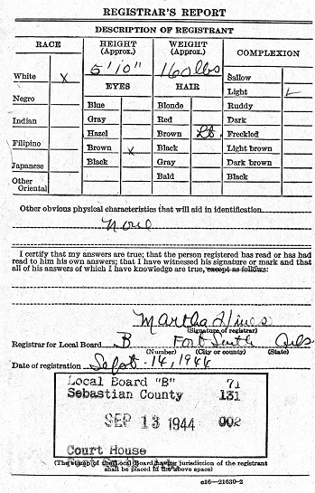 Sept 13, 1944 John registered for the military draft in Fort Smith,
