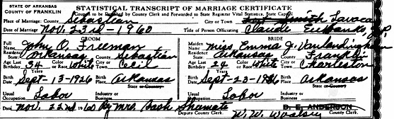 Audie Lee & Sarah "Sallie" D. Eubanks Freeman. Nov 23, 1960